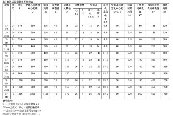再后的字母T、C、H分別表示頂部綁扎型、直立安裝的頂部線夾型或水平安裝的頂部線夾型;